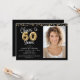 Celebrate a 60th birthday with these elegant and festive party invitations featuring the title CHEERS TO 60 YEARS with faux metallic gold balloon numbers and modern script typography, one photo and gold streamers and confetti in your choice of background colour (shown in black). ASSISTANCE: For help with design modification or personalisation, transferring the design to another product or if you would like coordinating items, contact the designer BEFORE ordering via Zazzle Chat or email makeitaboutyoustore@gmail.com.