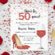 Cheers to Fifty years Red Glitter Wine Heels Invit Flyer