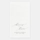 A classy wedding paper guest towels with the design placed at the bottom. The phrase "cheers to love" in black calligraphy and serif font. Personalise with your names and wedding date.