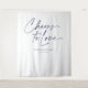 Create a romantic and elegant setting with this "Cheers to Love" wedding backdrop. Featuring a crisp white background with stylish deep navy blue script, this personalised tapestry is perfect for wedding ceremonies, receptions, bridal showers, or engagement parties. Customise it with the couple's names and wedding date to add a special touch. Ideal for photo booths, sweetheart tables, or as a statement decor piece.
