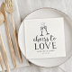 Make your cocktail hour extra special with our personalised wedding napkins featuring a pair of champagne flutes joined by an effervescent heart. "Cheers to love" appears beneath in black calligraphy script and vintage block typography. Customise these whimsical yet elegant black and white napkins with your names and wedding date.