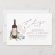 Planning a wine themed or wine tasting engagement party, or hosting the big event at a winery or vineyard? Invite your guests with our elegant wine tasting engagement party invitations, featuring a bottle of burgundy red wine and two wine glasses and adorned with green watercolor eucalyptus leaves and foliage. "Cheers to Love" appears in chic calligraphy script lettering. For a finishing touch, personalise the wine bottle label with the couple's initials. Perfect for engagement celebrations in wine country, winery or vineyard settings.