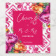Cheers to mr and mrs fuchsia tiles orange peonies wine label