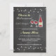 Rustic chalkboard Retirement party invite with wine bottle, glasses & string lights. SIMPLY CHANGE THE TEXT TO SUIT YOUR PARTY. Back print included