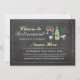 Rustic chalkboard Retirement party invite with wine bottle, glasses & string lights. SIMPLY CHANGE THE TEXT TO SUIT YOUR PARTY. Back print included