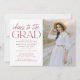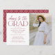 Invite guests to celebrate the graduate with our stylish photo graduation party invitations! The modern graduation party invitations display your graduate's vertical senior photo. The phrase "cheers to the graduate" is featured in trendy burgundy lettering. Personalise the front of the graduation party invitation by adding the graduate's name, school name, graduation year, and party details. The invite reverses to display a burgundy and white trellis pattern.