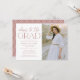Invite guests to celebrate the graduate with our stylish photo graduation party invitations! The modern graduation party invitations display your graduate's vertical senior photo. The phrase "cheers to the graduate" is featured in trendy dusty rose lettering. Personalise the front of the graduation party invitation by adding the graduate's name, school name, graduation year, and party details. The invite reverses to display a dusty rose and white trellis pattern.