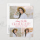 Invite guests to celebrate the graduate with our stylish photo graduation party invitation postcards! The modern graduation party postcards display 3 of the graduate's senior photos. The phrase "cheers to the graduate" is featured in trendy red lettering. Personalise the front of the graduation invitation postcards by adding the graduate's name, school name, and graduation year. The invitation reverses to feature your return address and graduation party details.