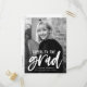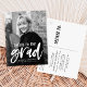 Invite guests to celebrate the graduate with our Cheers to the Grad graduation party invitation postcards. The modern graduation party postcard invites feature the graduate's photo with "Cheers to the grad" in a white, hand-lettered brush script. Personalize the front of the invite by adding the graduate's name, school name, and graduation year. The invite reverses to display your return address and graduation party details.