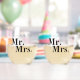 Cheers to the New Mr. & Mrs. This design is all type. The main focus is Mr. & Mrs., in big, bold type. You can personalise the back of the glasses with name and date. This set makes a great gift.
