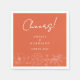 This Cheers Verona Sunset Elegant Orange Floral Wedding Cocktail Napkin showcases delicate line art flowers on a vibrant orange background, complemented by contemporary typography and script calligraphy. It is fully customisable with the couple's names and wedding date.