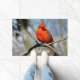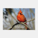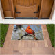 Cheery red cardinal sends a welcome greeting, on sturdy doormat.