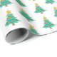 This wrapping paper features an original illustration: a cheery Christmas tree! Hand drawn illustration of a Christmas tree topped with a large gold star and bedecked with smaller stars and red ribbons.