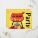 Get cheesy with these fun fondue party postcard invitations. Perfect for cosy gatherings, birthday parties and cocktail parties for friends and family. Featuring an orange retro fondue pot with flowers, bubbling cheese and fondue forks on a removable Swiss cheese background. Personalise it with your own custom text. PinkInkArt original.