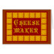 Cheese Maker retro kitchen art in decorated gothic letters with a vintage woodcut art pattern border in yellows and cheddar orange for cooks who love to make cheese.