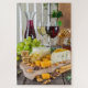 This tasty looking design features wine, cheese, crackers, walnuts, honey and grapes.