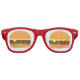 Cool hamburgers decorate these funny red cheeseburger sunglasses for burger lovers to wear in to go get fast food for a party.