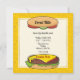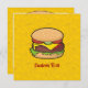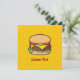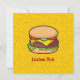 Cheeseburger cartoon illustration. Junk food outline icons yellow pattern background. Custom text.