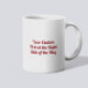 Great product, good delivery time, and an awesome idea for a gift! It was even better than I could have imagined, the customisation is incredible. The colour is perfect, it's dishwashable and microwaveable, the text print on the mug looks exactly like I wanted it to look and best of all, it's a large sized mug that you can drink plenty of coffee or whatever you want! I gifted this to my father and he loves it. He drinks coffee with that mug everyday :) I recommend.