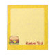 Cheeseburger cartoon illustration. Junk food outline icons yellow pattern background. Custom text.