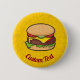 Cheeseburger cartoon illustration on yellow junk food seamless background. Custom text.