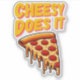 Cheesy Does It when you pull our that slice of melting cheese and pepperoni pizza. This humourous twist on words is a perfect cheesy graphic for all the cheesy folks out there like myself!