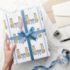 Dress up your gifts with this chic wrapping paper adorned with spiffy cheetahs and blue bows. Great for any occasion or holiday.