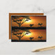 The silhouette of a cheetah chasing down a gazelle. The sunset blazes behind them.