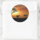 The silhouette of a cheetah chasing down a gazelle. The sunset blazes behind them.