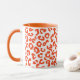Coffee mug in a digital, minimalist, animal print in a cheetah pattern - spots in deep orange on a white background