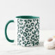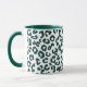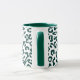 Coffee mug in a digital, minimalist, animal print in a cheetah pattern - spots in deep pine green on a white background