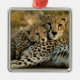 Cheetah Cub Snuggling with its Mum Metal Ornament