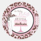 Cheetah print with pink birthday cake and a zebra bow and poka dot ribbon trim.