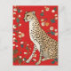 Cheetah on a Red Background With Flowers Postcard