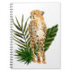 Cheetah Outlook I by Annie Warren. A cheetah in a watercolor style looks on with tropical green leaves in the background. | 164730Z