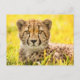 This postcard features a photo of a cheetah in the grass. By Ronda Gregorio. Original from Smithsonian's National Zoo.
