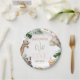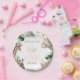Sweet girl's safari themed first birthday paper plates featuring some safari party animals, party hat, tropical foliage and a modern calligraphy image heading. This safari themed first birthday paper plate is ideal for a party animals birthday.