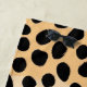 This design features a leopard print pattern on a light orange background. The pattern is composed of black spots that vary in size and shape, creating a contrast with the orange colour. This design is perfect for anyone who loves animal prints and wants to