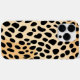 This design features a leopard print pattern on a light orange background. The pattern is composed of black spots that vary in size and shape, creating a contrast with the orange colour. This design is perfect for anyone who loves animal prints and wants to