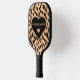 Cute tan brown and black cheetah print pickleball paddle with heart shape for women and girls. Customise the name for a personalised gift.