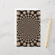 The artwork features a central point from which numerous depictions of cheetah faces radiate outwards in a spiralling, kaleidoscopic pattern. The cheetah faces vary slightly in pose and expression, adding a touch of dynamism to the overall design. The warm colour palette of oranges, yellows, and blacks characteristic of a cheetah's fur dominates the image. The cheetahs appear to be set against a dark, speckled background, possibly suggesting the night sky or a textured environment. The kaleidoscopic effect creates a sense of depth and motion, drawing the viewer's eye towards the centre of the design.