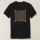 The artwork features a central point from which numerous depictions of cheetah faces radiate outwards in a spiralling, kaleidoscopic pattern. The cheetah faces vary slightly in pose and expression, adding a touch of dynamism to the overall design. The warm colour palette of oranges, yellows, and blacks characteristic of a cheetah's fur dominates the image. The cheetahs appear to be set against a dark, speckled background, possibly suggesting the night sky or a textured environment. The kaleidoscopic effect creates a sense of depth and motion, drawing the viewer's eye towards the centre of the design.