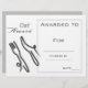 An award certificate award with a chef knife and fork simple cooking theme image in perfect for encouraging a young cooking student. You can write in your own details. A great resource for a cooking school.
