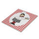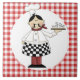 Ceramic tile or trivet with red and white chequered border and moustached chef holding steaming pizza. A perfect addition to any kitchen or restaurant decor.