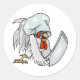 Better listen to the chicken. He's in charge of the kitchen. Fierce chicken with a chef hat and large butcher knife.