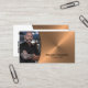 The front and back of this business card design feature faux brushed copper sets off the background of this business card design with a photo placeholder on the left with template name and title on the right. The back includes a coordinated design and colors with text fields for the business name and details. Replace the placeholder photo with your vertical format photograph. Personalize the template fields, remove text or use the edit design tool to select a font style, size, and color you like. The placeholder photo is courtesy pexels.com.