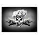 This cool abstract chef skull is wearing his floppy chef toque, with crossed carving chef knives replacing traditional crossbones. Bold black flames are projecting out from each side of him. The backdrop is a vintage styled black and grey. Visit www.zazzle.com/thechefshoppe to see more cool culinary themed skulls by sdesiata.