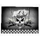 Give your gift to the culinary school graduate, in this appropriately themed chef skull gift bag. This customisable chef skull product, features a cool chef skull wearing his chef hat, with two sharp crossed chef carving knives, in front of a bold black flame. Black and white chequered panels line each side. The background may be changed to a colour of your choice. This product is great for the executive chef, sous chef, line cook, home cook, or any culinary professional with a fierce passion for cooking. Visit www.zazzle.com/thechefshoppe and www.zazzle.com/whiskybusiness, to see more cool culinary themed skulls designed by sdesiata, on tons of products offered by Zazzle.
