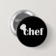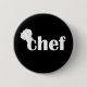 A graphic design of the text chef with a chef hat on a button for the chef.