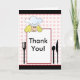 Chef with Thank You message and fork, knife, and spoon. Can be used to thank someone for a dinner, brunch, meal, etc.